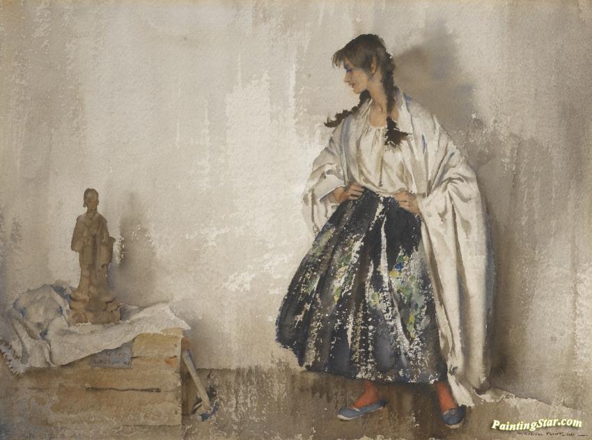 The Model And Chinese Philosopher, Art Painting by Sir William Russell Flint