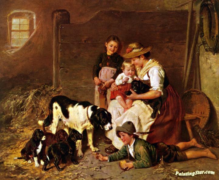 The New Puppies, Art Painting by Adolf Eberle