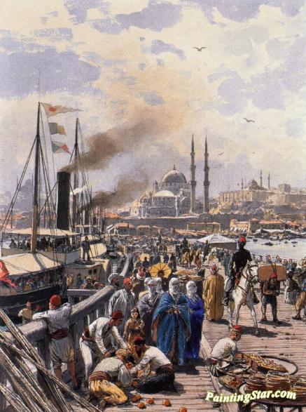 The Old Galatea Bridge Connecting Karakoy To Eminonu Over The Gold Horn, Istanbul, Art Painting by Themistocles von Eckenbrecher