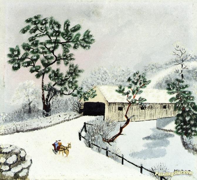 The Old Pink Bridge, Art Painting by Anna Mary Robertson Grandma Moses