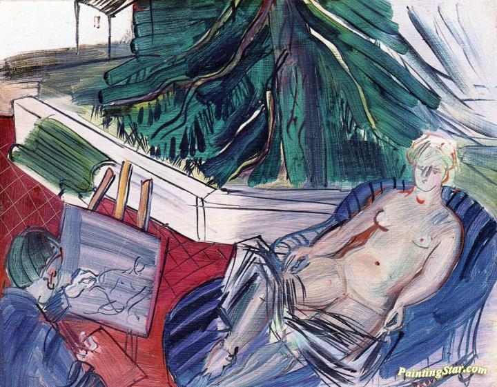 The Painter and His Model on the Terrace at Caldas de'Montbuy, Art Painting by Raoul Dufy