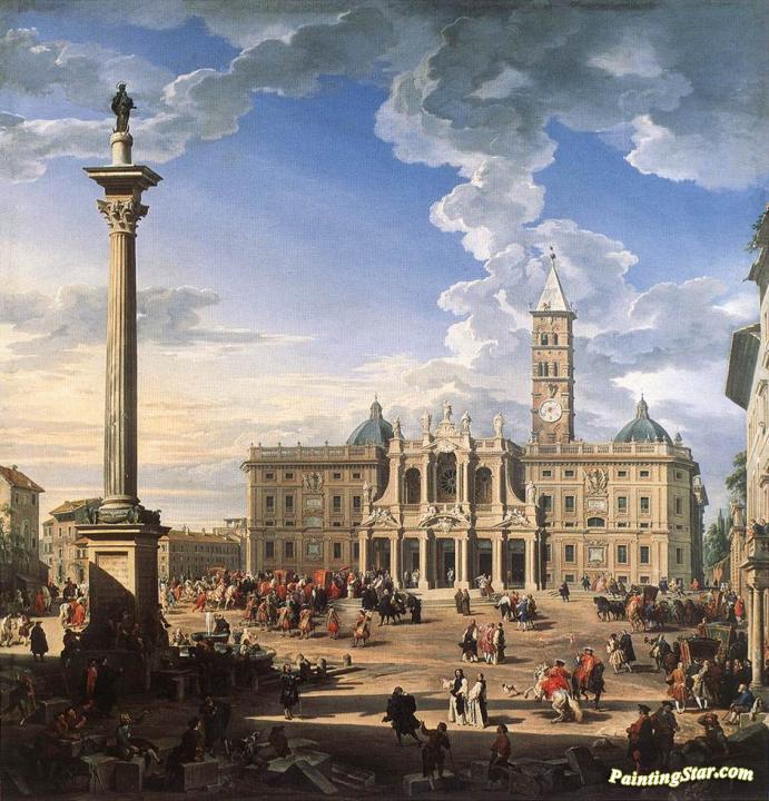 The Piazza and Church of Santa Maria Maggiore, Art Painting by Giovanni Paolo Pannini