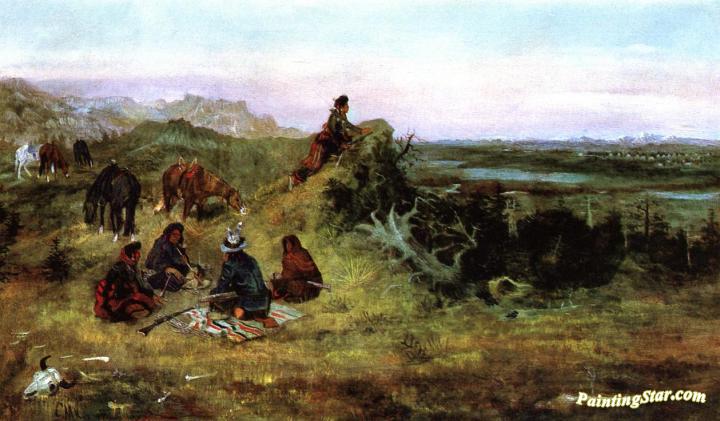 The Piegans Preparing to Steal Horses from the Crows, Art Painting by Charles Marion Russell