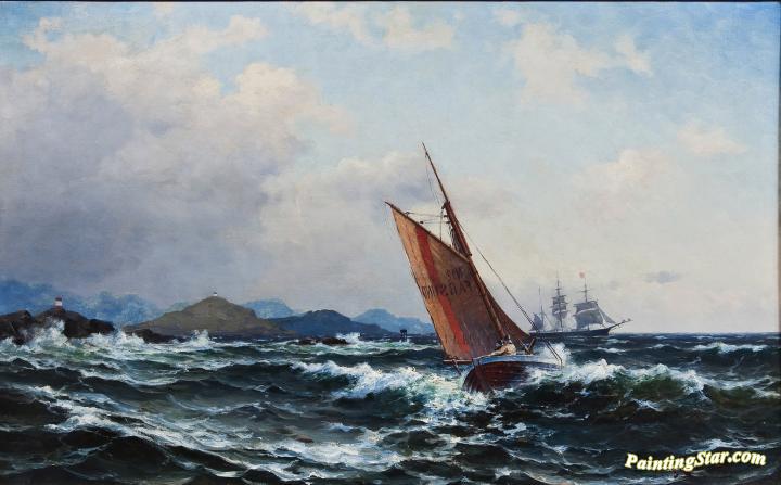 The pilot boat Farsund on mission, Art Painting by Lauritz Haaland