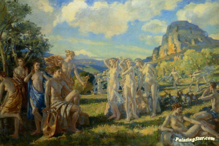 The Poet Accompanied by Some of the Muses Finds Inspiration in Nature, Art Painting by Wilfred Gabriel De Glehn