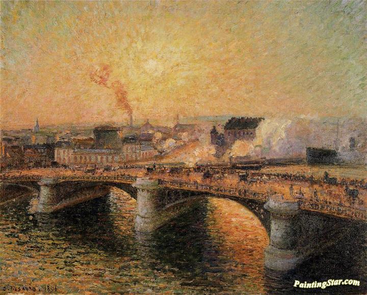 The Pont Boieldieu, Rouen: Sunset, Art Painting by Camille Pissarro