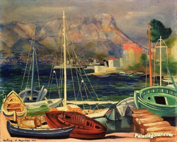 The Port of Saint-Mandrier, Art Painting by Moise Kisling