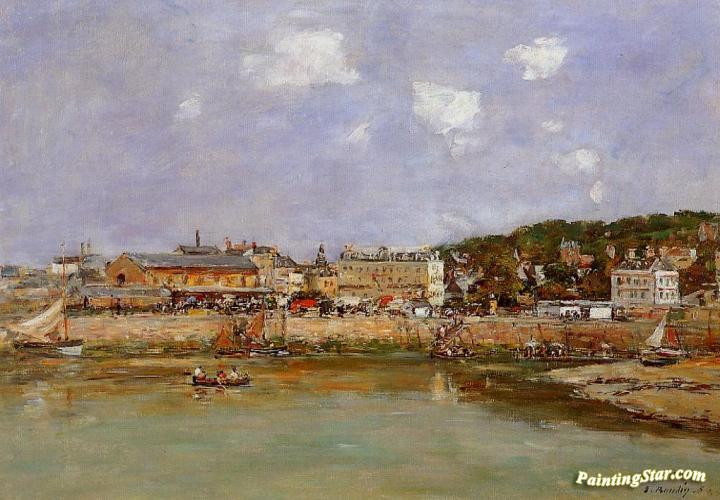 The Port of Trouville, the Market Place and the Ferry, Art Painting by Eugène-Louis Boudin