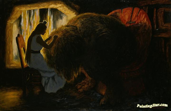 The Princess Picking Lice From The Troll, Art Painting by Theodor Kittelsen
