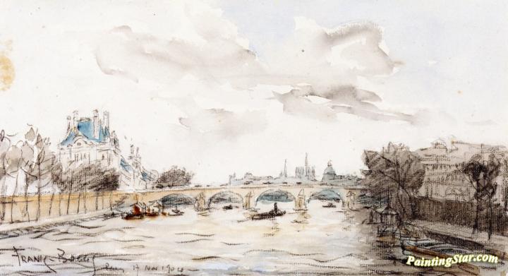The Quays, the Louvre and Notre Dame, Paris, Art Painting by Frank Myers Boggs