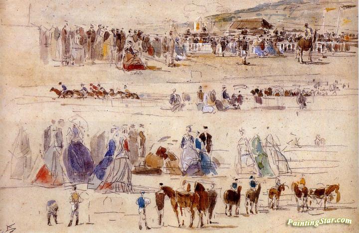 The Racetrack at Deauville, Art Painting by Eugène-Louis Boudin