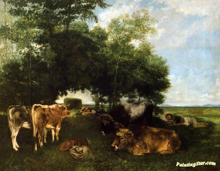 The Rest During the Harvest Season, Art Painting by Gustave Courbet