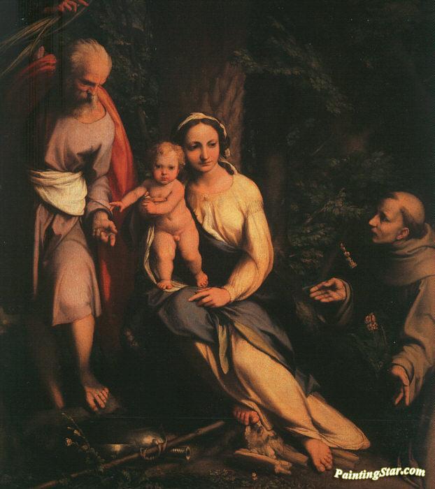 The Rest on the Flight to Egypt with Saint Francis, Art Painting by Correggio
