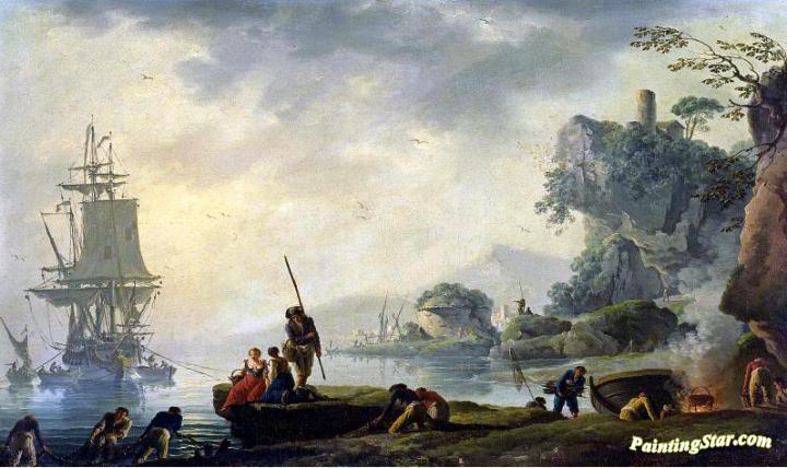 The Return of the Fishermen in a Coastal Landscape, Art Painting by Claude-Joseph Vernet