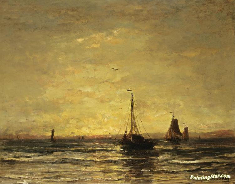 The Return Of The Fleet At Sunset, Art Painting by Hendrik Willem Mesdag