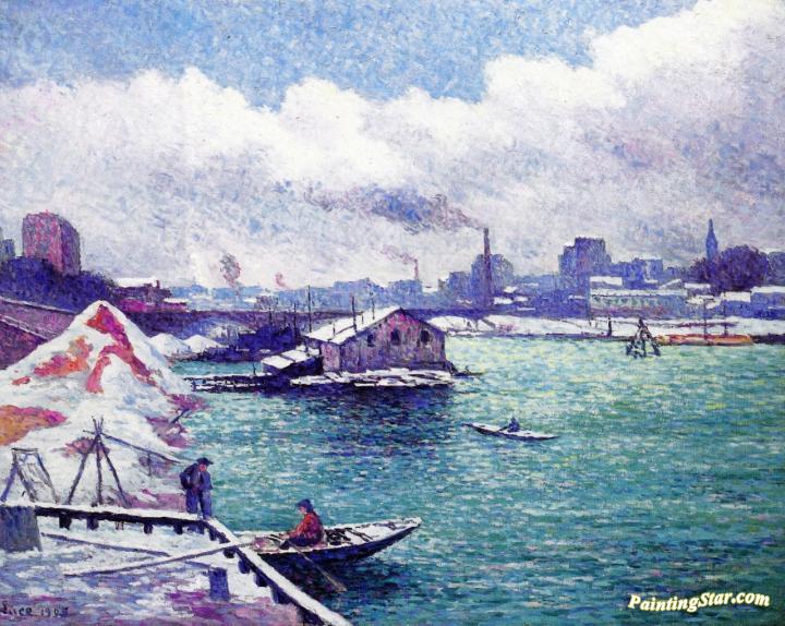 The River in Winter, Quai de Javel, Art Painting by Maximilien Luce