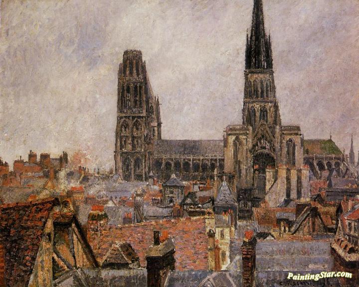 The Roofs of Old Rouen: Grey Weather, Art Painting by Camille Pissarro