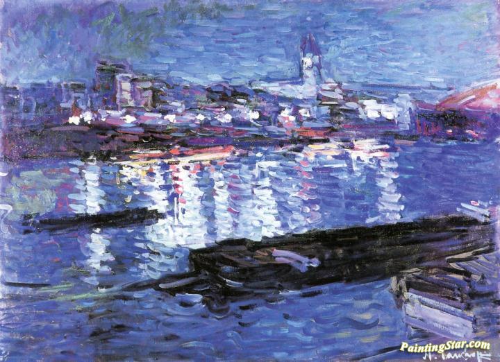 The Seine by Night outside Gare de Lyon Railway Station, Art Painting by Nicolas Tarkhoff