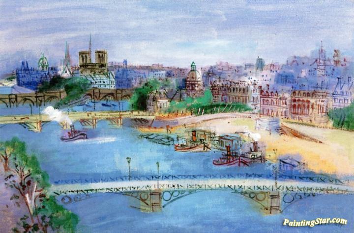 The Seine With Pont Du Carrousel, Art Painting by Jean Dufy