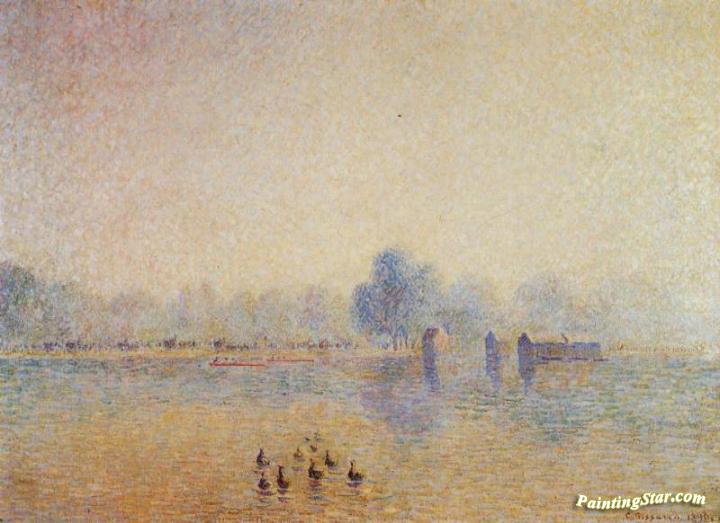 The Serpentine, Hyde Park, Fog Effect, Art Painting by Camille Pissarro