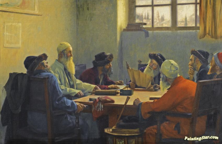 The Seven Rabbis In Jerusalem, Art Painting by Theodoros Ralli
