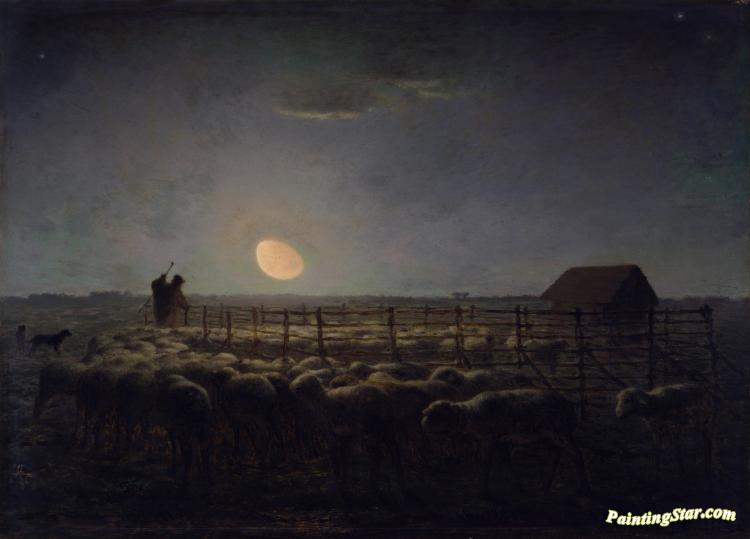 The Sheepfold,moonlight, Art Painting by Jean-François Millet