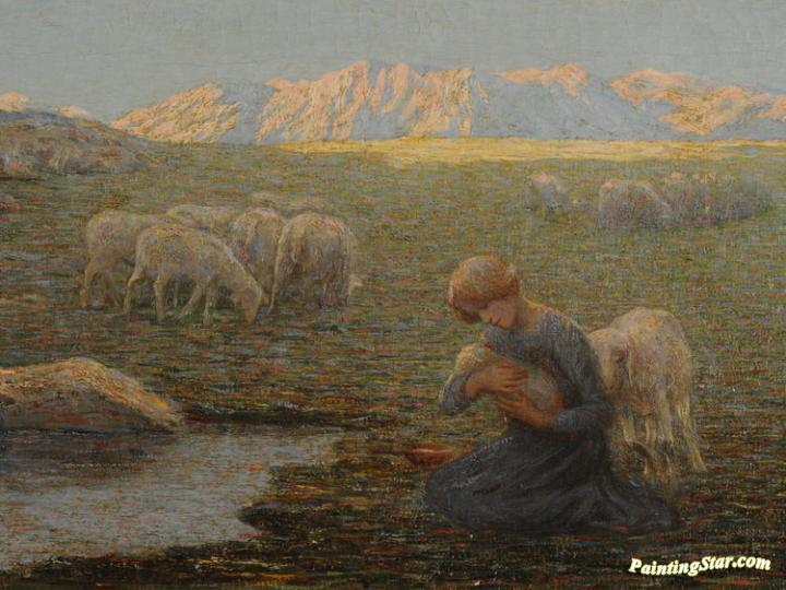 The sick sheep, Art Painting by Emilio Longoni
