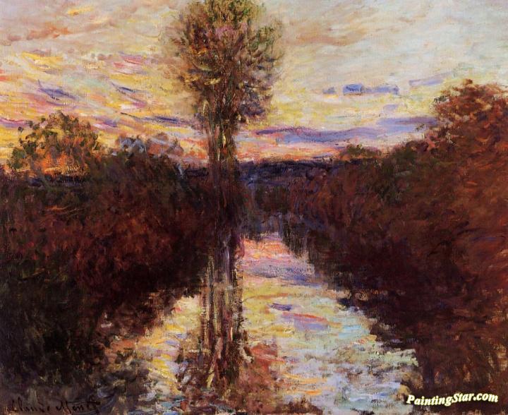 The Small Arm of the Seine at Mosseaux, Evening, Art Painting by Claude Oscar Monet