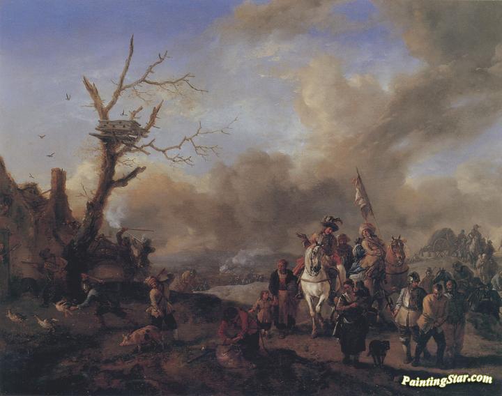 The soldiers squad with sutlers and children, Art Painting by Philips Wouwermans