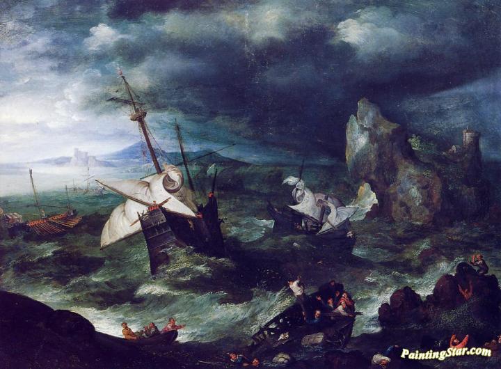 The Storm At Sea With Shipwreck, Art Painting by Jan Bruegel the Elder