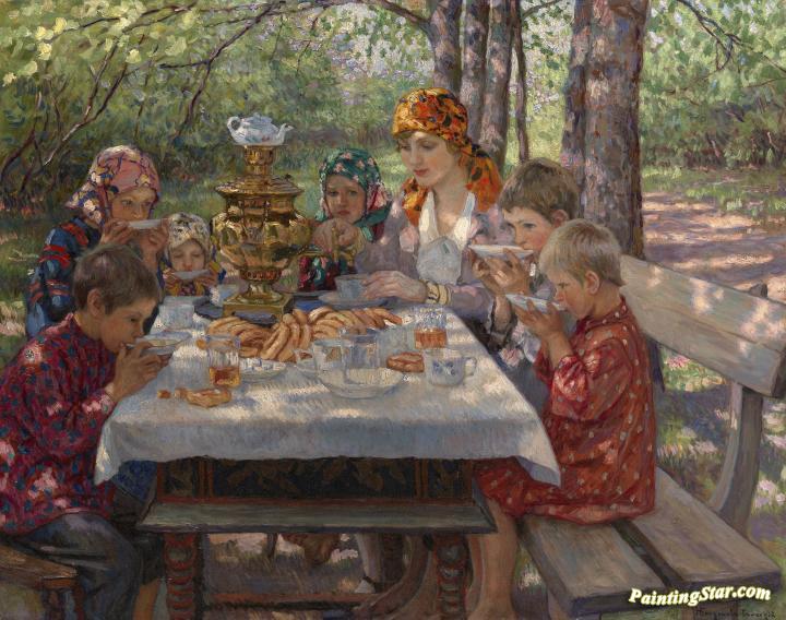 The Teacher's Guests, Art Painting by Nikolai Petrovich Bogdanov-belsky