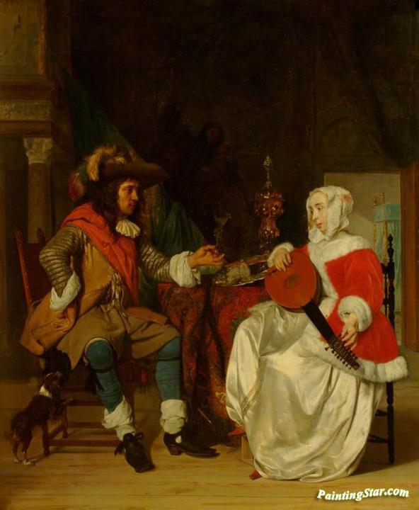 The Tête-à-Tête: A Lady Playing a Lute, and a Cavalier, Art Painting by Gabriel Metsu