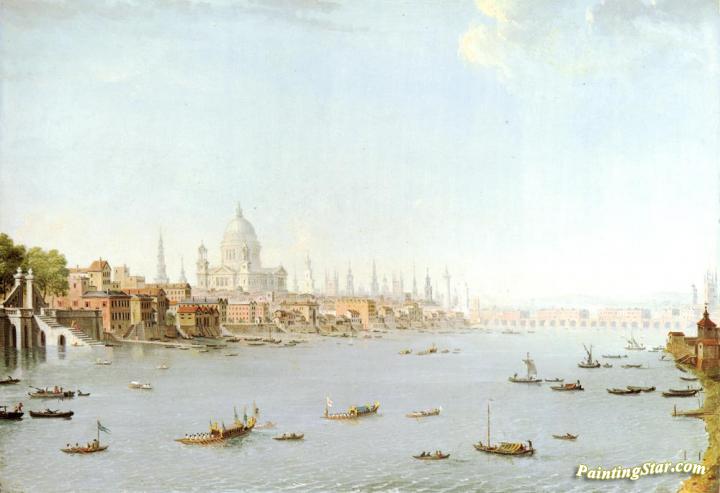 The Thames Looking Towards The City, Art Painting by Antonio Joli
