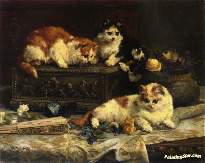 The Three Kittens, Art Painting by Charles van den Eycken