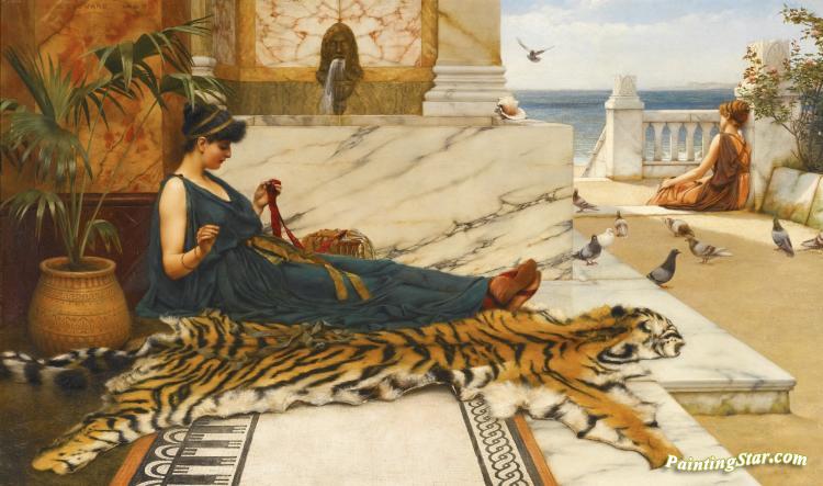 The Tigerskin (sewing Girl), Art Painting by John William Godward