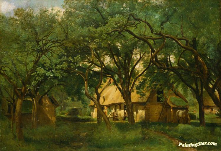 The Toutain Farm At Honfleur, Art Painting by Jean-Baptiste-Camille Corot