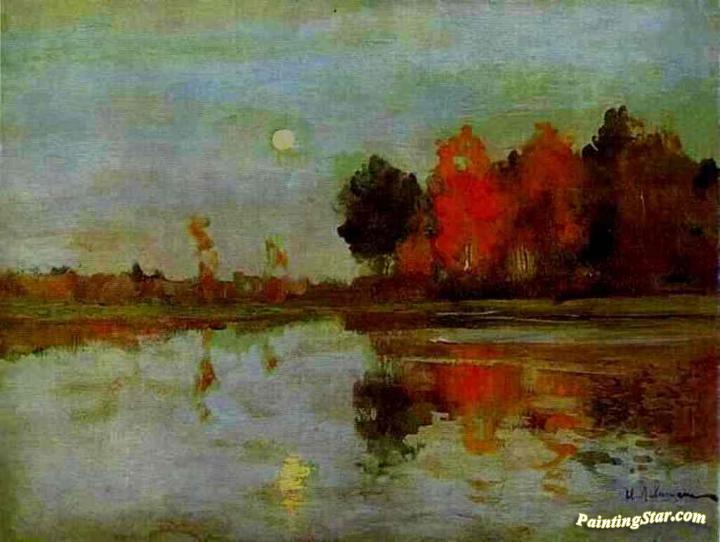 The Twilight. The Moon. Study, Art Painting by Isaac Ilich Levitan