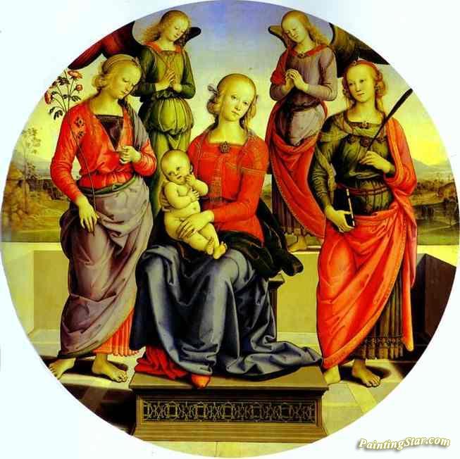 The Virgin And Child Surrounded By Two Angels, St. Rose, And St. Catherine, Art Painting by Pietro Perugino