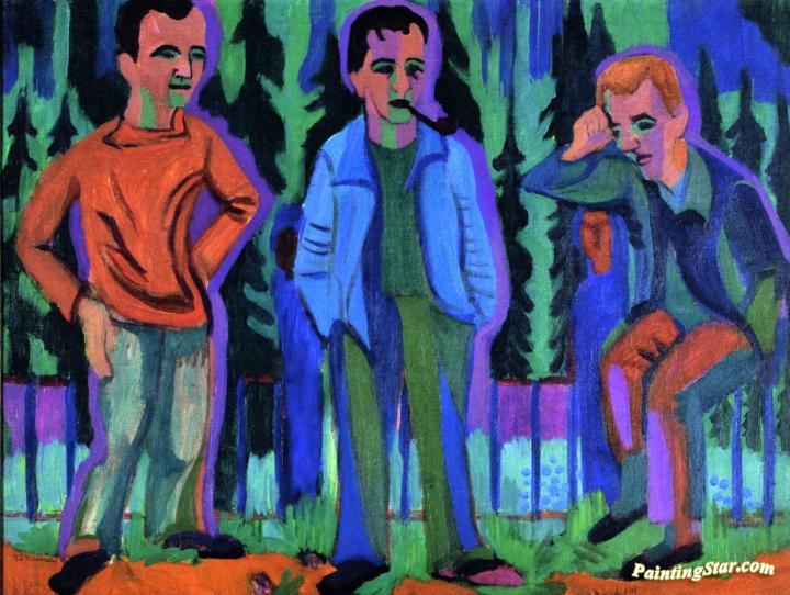Three Artists: Hermnn Scherer, Kirchner, Paul Camenisch, Art Painting by Ernst Ludwig Kirchner
