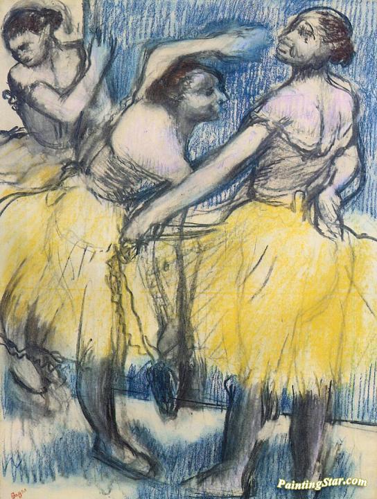Three Dancers in Yellow Skirts, Art Painting by Edgar Degas