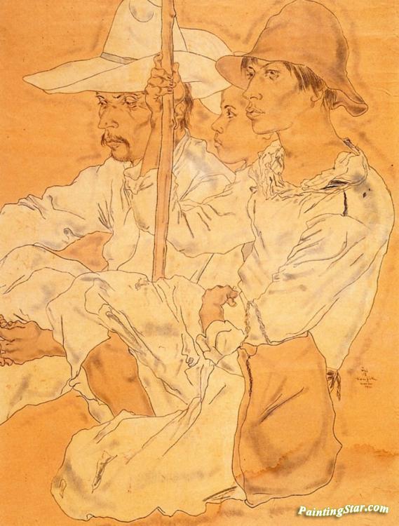 Three Farmers, Art Painting by Tsuguharu Foujita