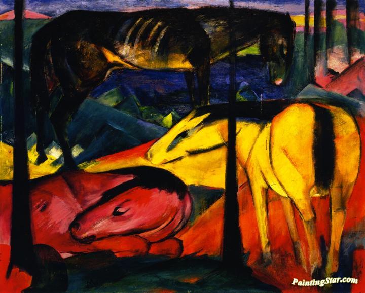 Three Horses I (larger version), Art Painting by Franz Marc