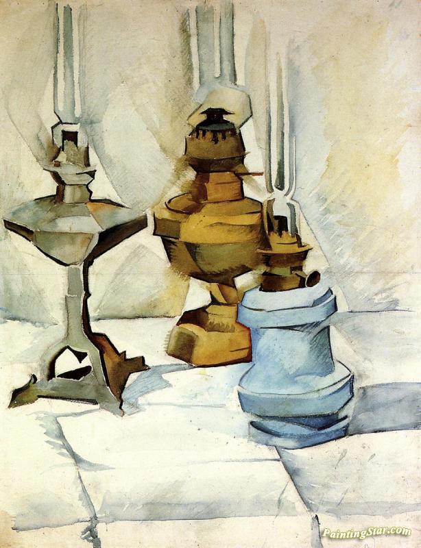Three Lamps, Art Painting by Juan Gris