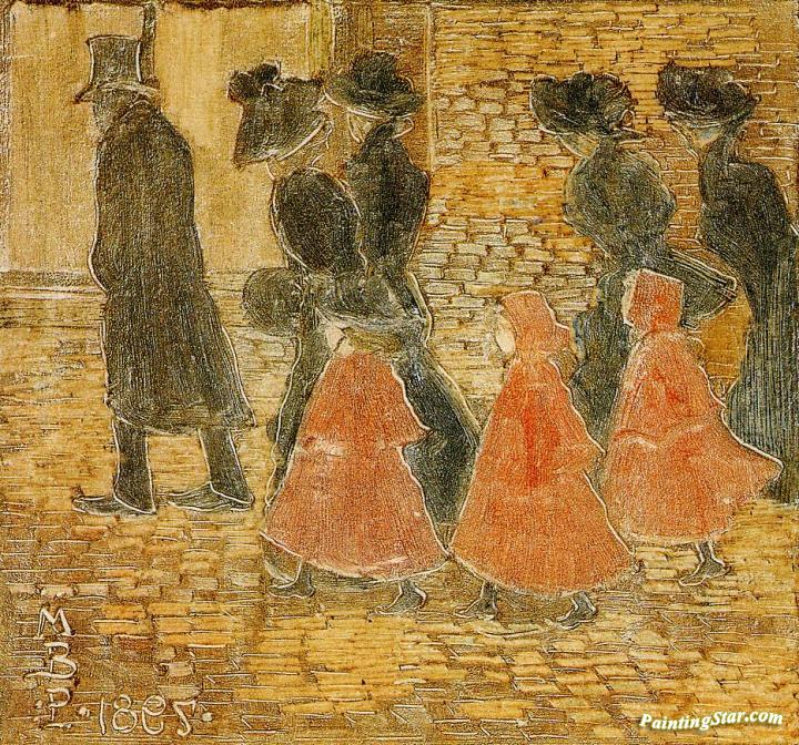 Three Little Girls in Red, Art Painting by Maurice Prendergast