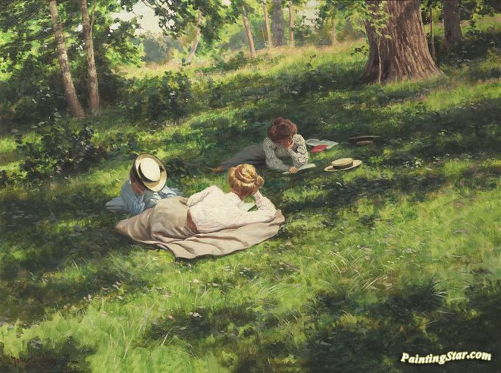 Three Reading Women In A Summer Landscape, Art Painting by Johan Krouthén