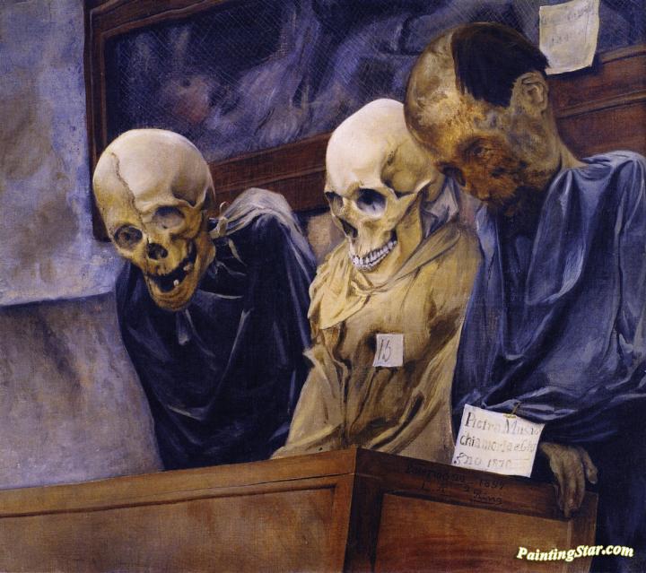 Three Skeletons in the Capuchin Monastery near Palermo, Art Painting by Laurits Andersen Ring