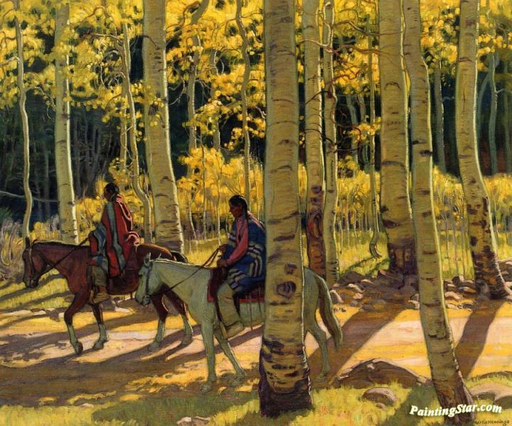 Through The Sunlit Aspens, Art Painting by E. Martin Hennings