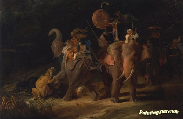 Tiger Hunting in the East Indies, Art Painting by Thomas Daniell