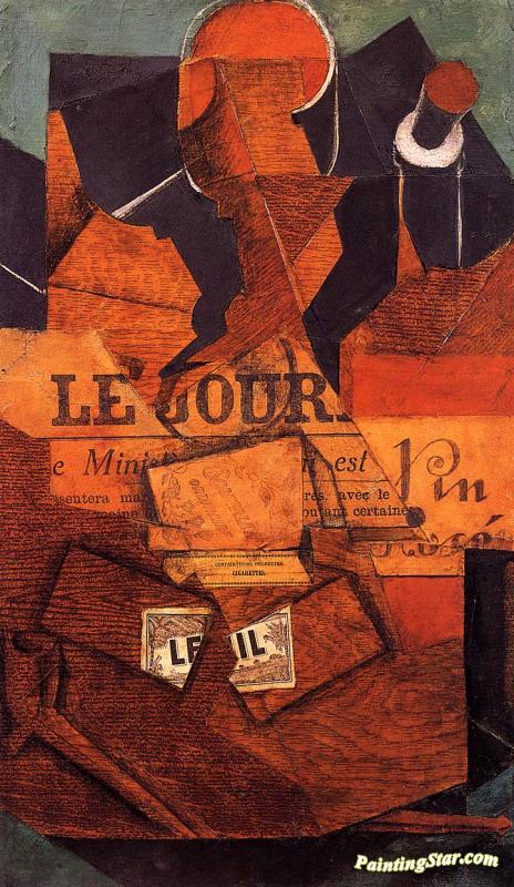 Tobacco, Newspaper And Bottle Of Wine, Art Painting by Juan Gris