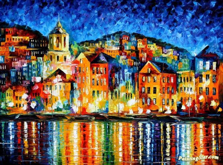 Town at the harbor, Art Painting by Leonid Afremov